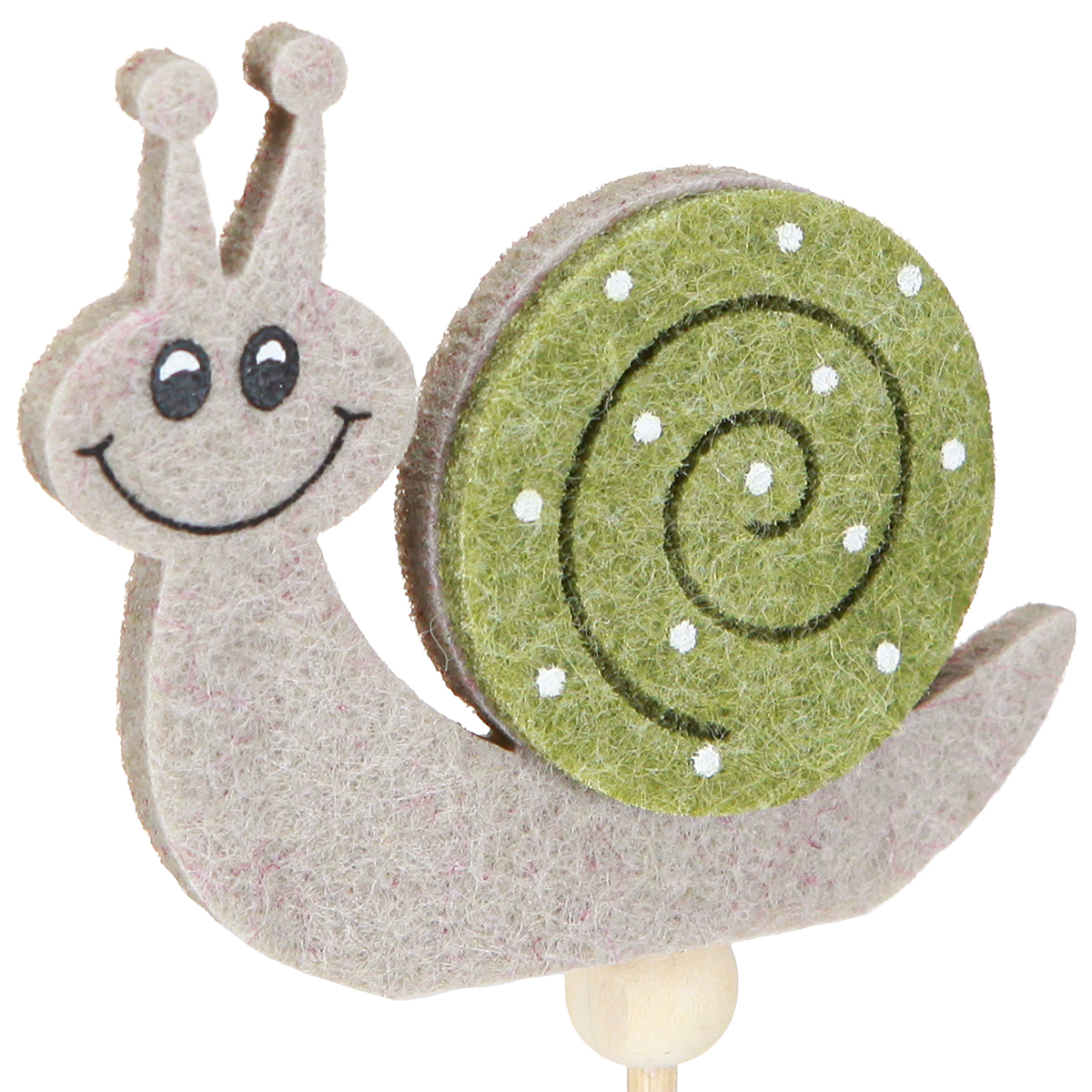 Kvetinová tyčinka Slimák Dekorácia Drevená plsť Zelená 6,5cm 12 ks