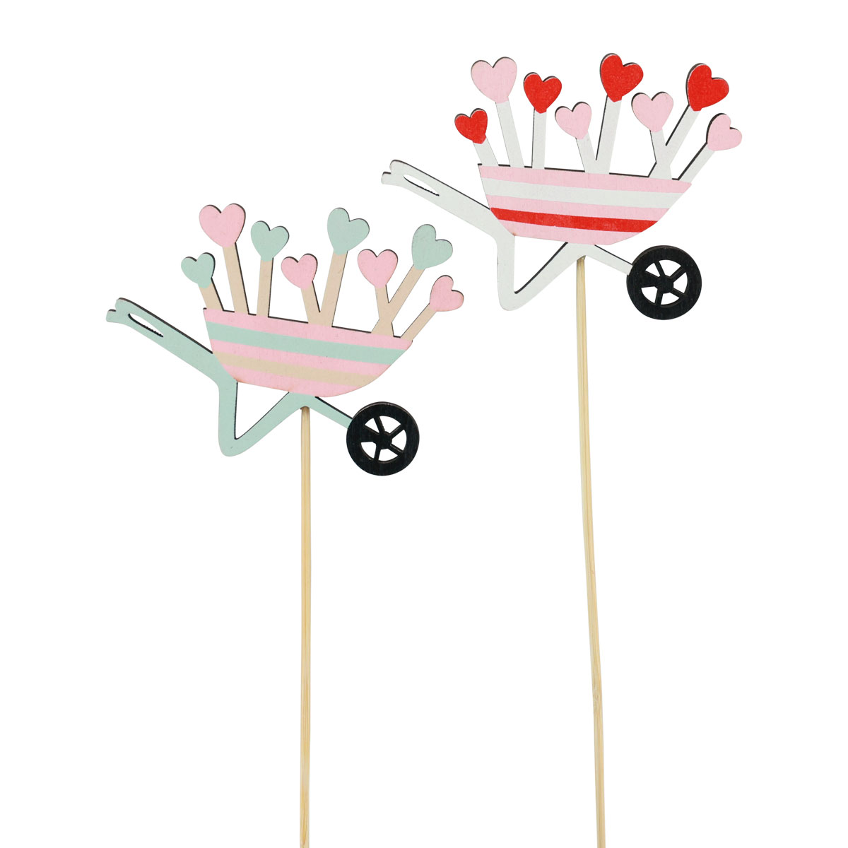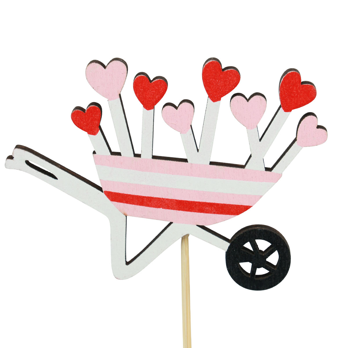 Názov produktu: Kvetinová zátka fúrik drevené srdiečka farebné 9x6,5cm 12 ks