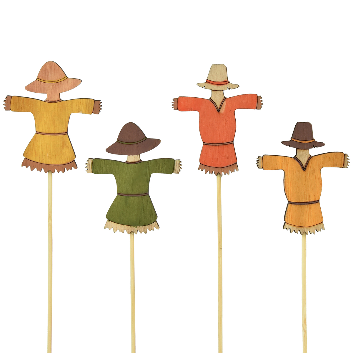 Naše s láskou navrhnuté kvetinové zátky v tvare farebných strašiakov sú vrcholom každej jesennej dekorácie. Farebné drevené kvetinové zátky s rustikálnym nádychom vytvárajú teplú a príjemnú atmosféru na každom stole alebo kvetinovom záhone. 12 drevených kolíkov je roztriedených štyrikrát podľa farby a naostrené drevené paličky uľahčujú ich zapichnutie do zeme alebo do aranžmánov. Jednostranná maľba so zubatými obrysmi naznačujúcimi slamku strašiaka zdôrazňuje prirodzenú jesennú tému a vintage dizajn vnesie do vašej dekorácie nádych nostalgie.