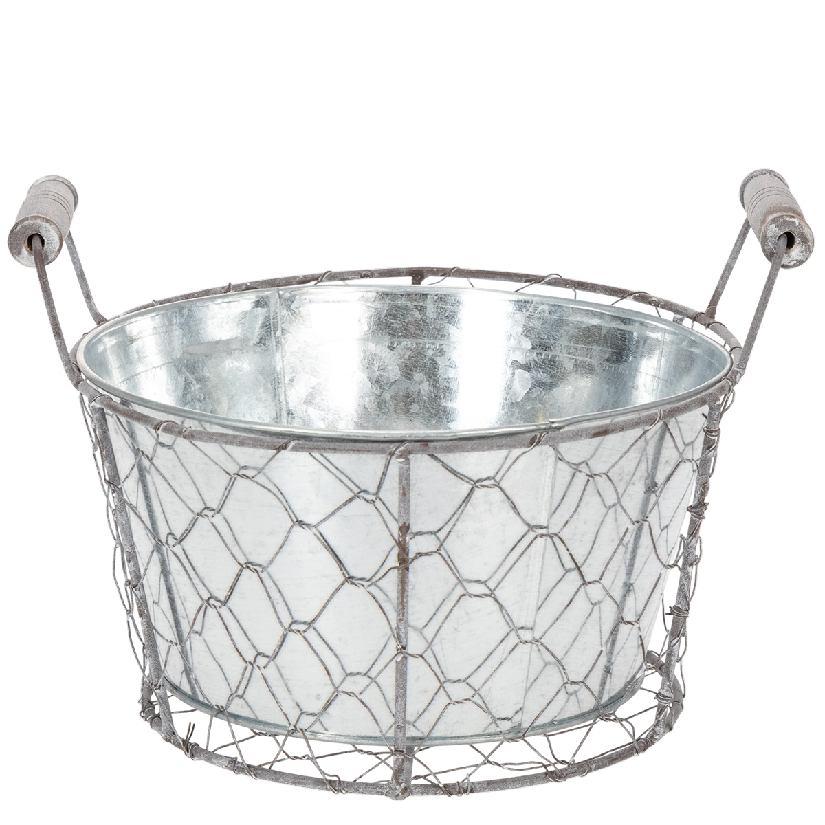 Kvety na kvetináč s vložkou, drôtený kôš, kvetináč, strieborná pružina, bielo natretý, shabby chic, Ø22 cm V17,5 cm