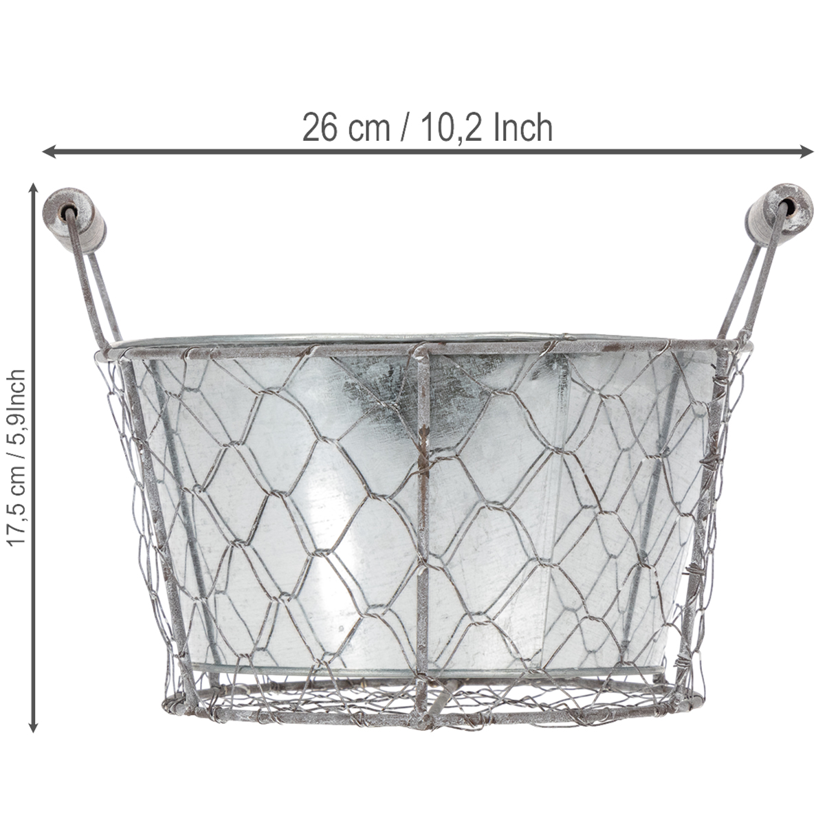Drôtený košík má odnímateľný kovový podnos, ktorý môžete použiť spoločne alebo samostatne na kvetinové aranžmány. Ak plánujete do košíka zasadiť kvety, mali by ste kovovú nádobu vopred vystlať fóliou. Zabránite tak neskoršiemu vytekaniu zeminy a vody. Košík je tak ideálny aj ako základ pre kvetinové aranžmány pri dekorácii stola. Stačí pridať trochu peny z rezaných kvetov a v tomto kovovom koši môžete vytvoriť nádherné jarné dekorácie na Veľkú noc.