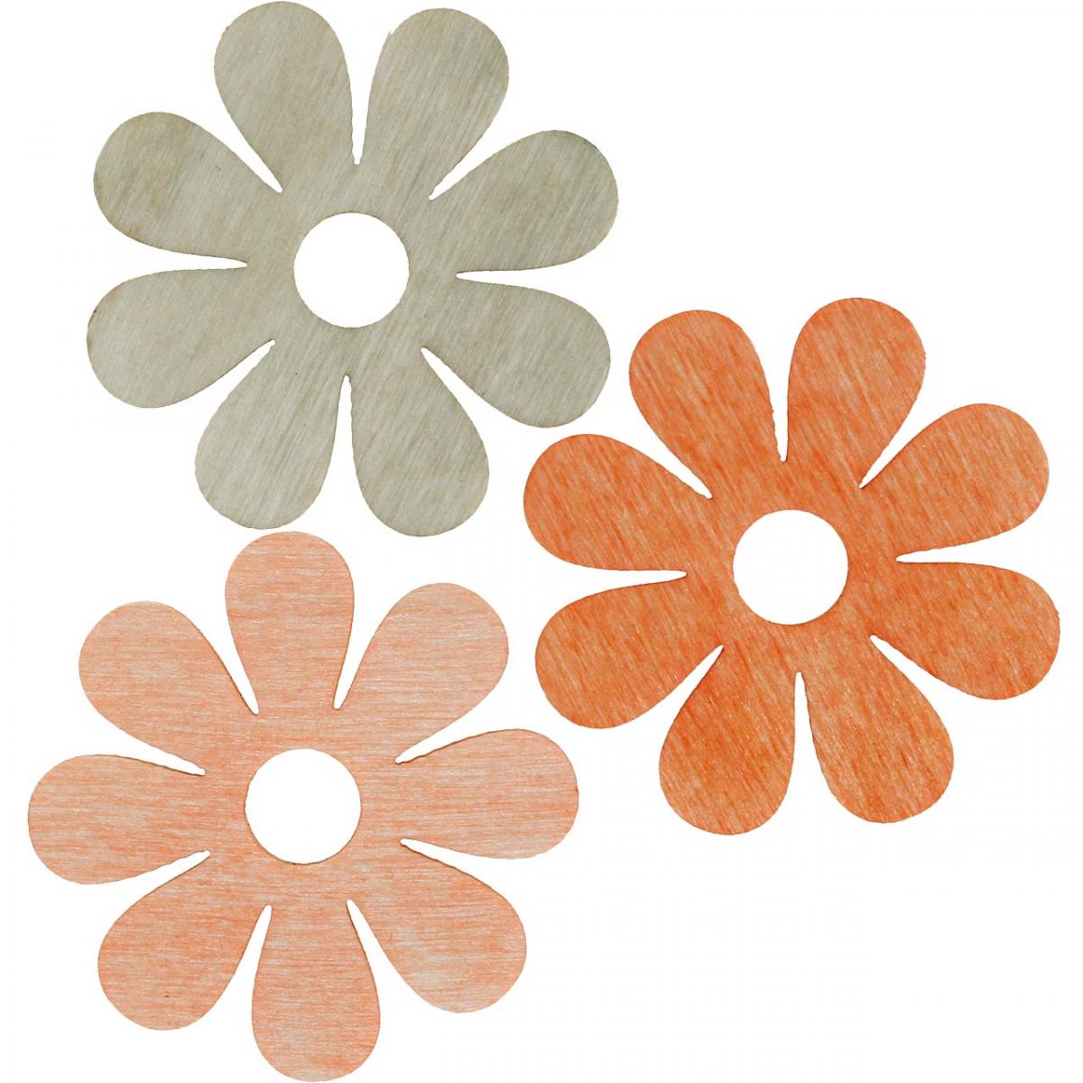 Kvety na posyp oranžová, marhuľová, hnedá posypaná dekorácia drevo 72 ks