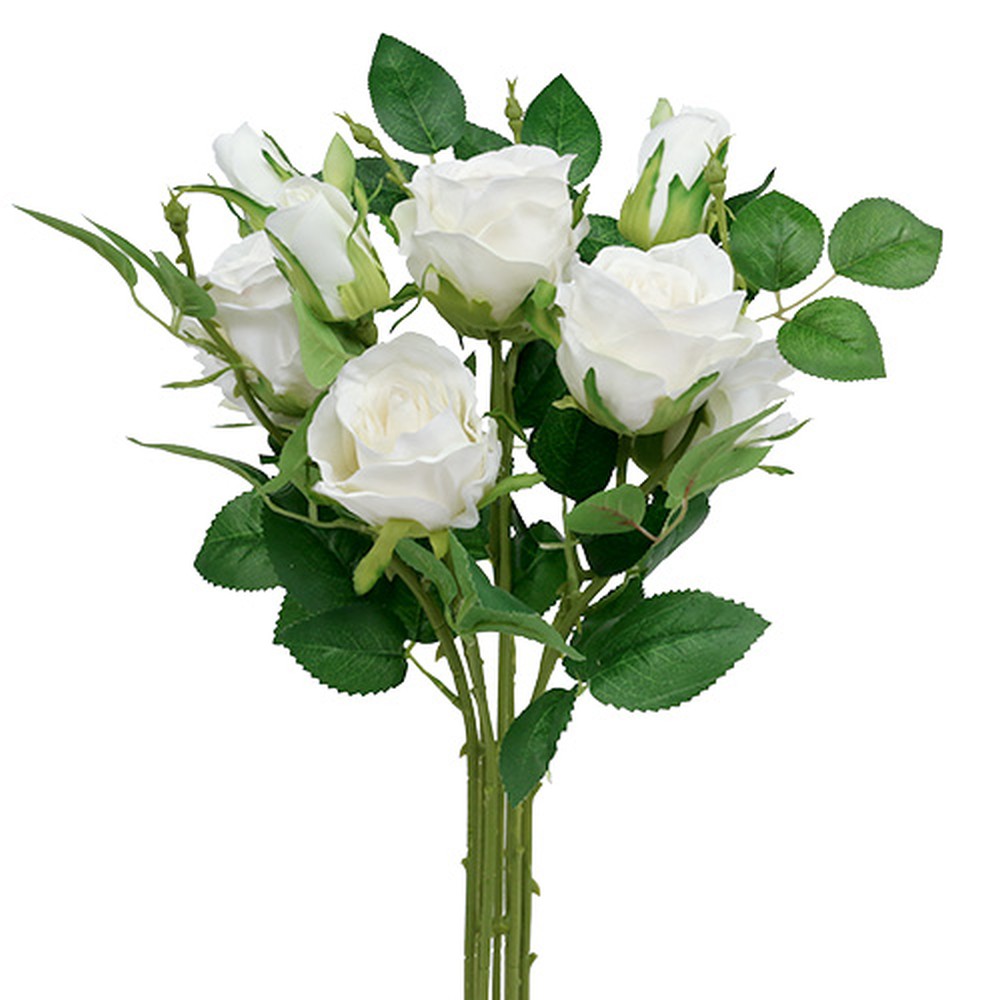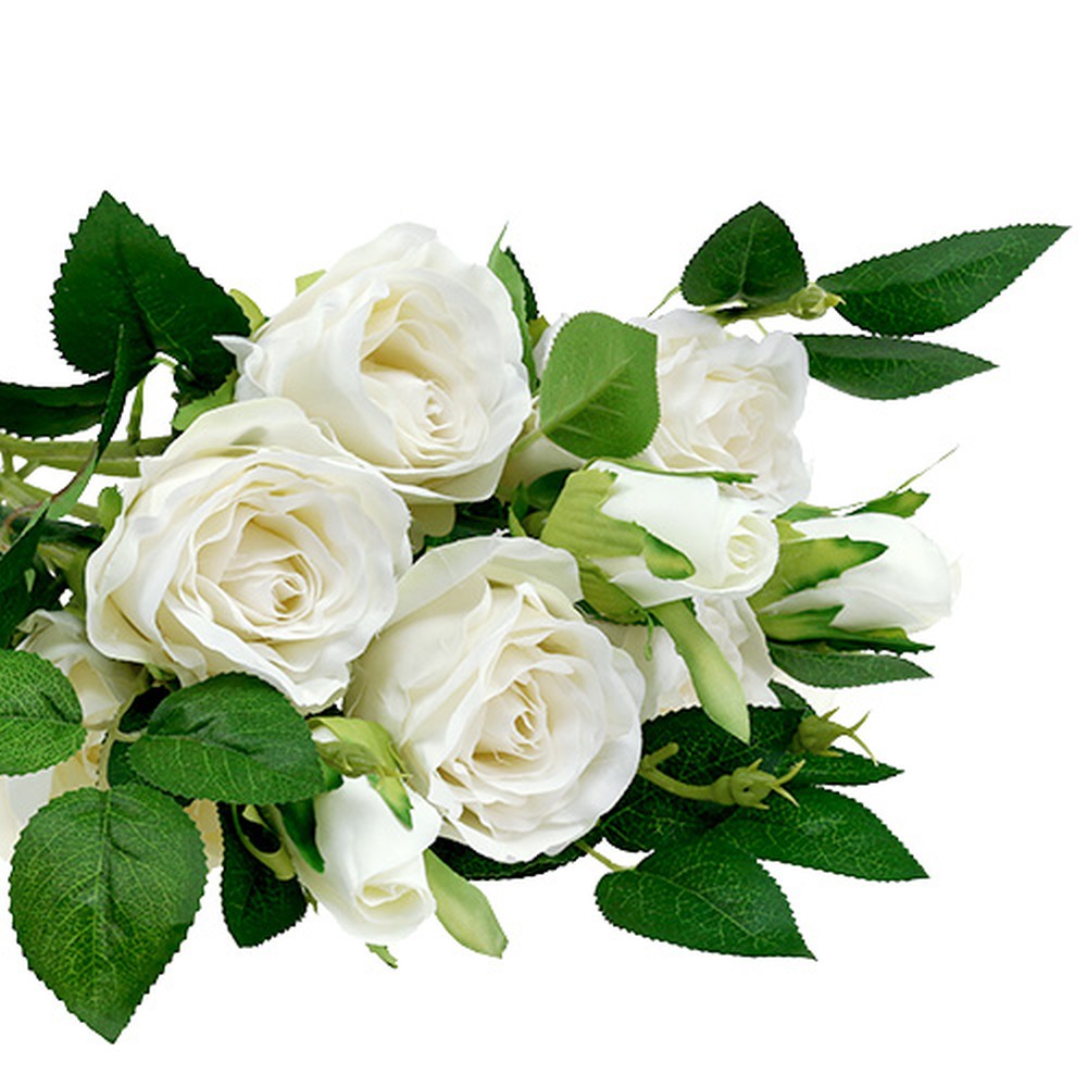 Umelá kytica ruží v bielej farbe má celkovú dĺžku cca 46 centimetrov, pričom priemer kvetu je od 3 do 6 centimetrov.