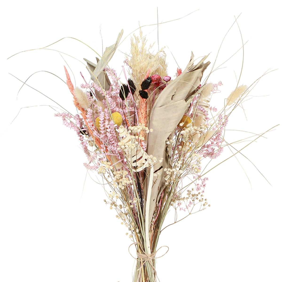Naša farebná kytica sušených kvetov je zdobená v láskyplnom boho-chic štýle a vytvára jemné, prirodzené akcenty vo vašom domove. Sušené kvety zaujmú svojou rozmanitosťou a harmonickou farebnou kombináciou, ktorá siaha od jemnej ružovej až po živé žlté a zemité tóny. S touto exotickou kyticou vytvoríte behom chvíľky atmosférickú dekoráciu obývačky, ktorá vyžaruje útulnosť a pozýva vás leňošiť.