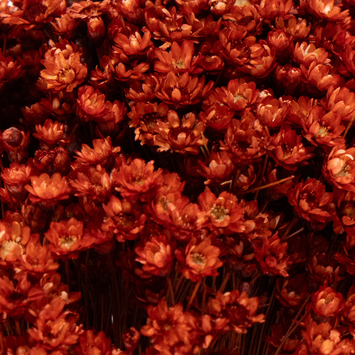 Táto kytica zo sušených kvetov je harmonickou kombináciou kvetov glixie a jemne trblietavých tráv. Vďaka svojej príjemnej červenej a prirodzenej farebnej palete prináša teplo a textúru do každej miestnosti. Či už je umiestnená na komode vo vstupnej hale, na poličke v obývačke alebo ako ústredný prvok na jedálenskom stole, tento aranžmán nenápadne zanechá dojem. Obzvlášť pozoruhodná je jej dlhá životnosť: po umiestnení zostáva táto kytica nádherná a svieža mnoho mesiacov. Tí, ktorí majú radi kreatívne aktivity, ju môžu použiť aj na sofistikované DIY projekty, ako sú umelecké aranžmány zo sušených kvetov. Skombinujte ju s inými prírodnými dekoratívnymi prvkami, ako sú drevené alebo keramické vázy, pre harmonický estetický dojem. Táto kytica dodáva špeciálny nádych aj slávnostným príležitostiam, ako sú svadby alebo narodeninové oslavy. Jednoducho úžasná – ideálna pre tých, ktorí oceňujú prírodnú eleganciu.