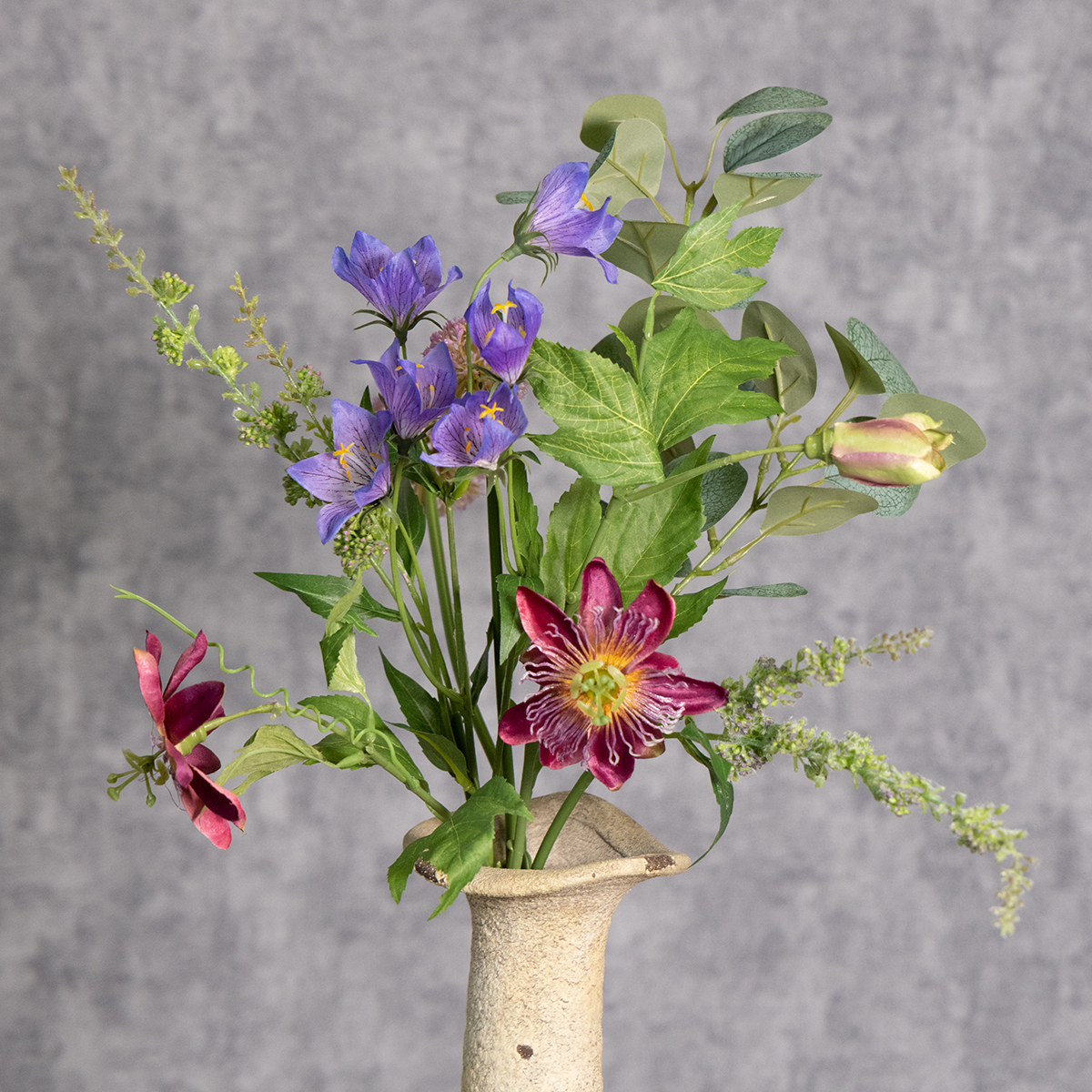 Naša kytica z umelých kvetov je poctou prirodzenej nádhere kvetov, dokonale vytvorenej z vysoko kvalitných plastov. S láskou vytvorené kvety vo fialovej, červenej a zelenej farbe sú skutočným pútačom pozornosti. Každý kvet, či už ide o jemné jarné kvety v jemnej fialovej farbe alebo o žiarivé červené akcenty, je starostlivo navrhnutý tak, aby sa čo najviac podobal skutočnej kytici. S výškou 60 cm a priemerom 20 cm sa kytica krásne začlení do váz v interiérovom štýle vidiecky, boho alebo moderný.