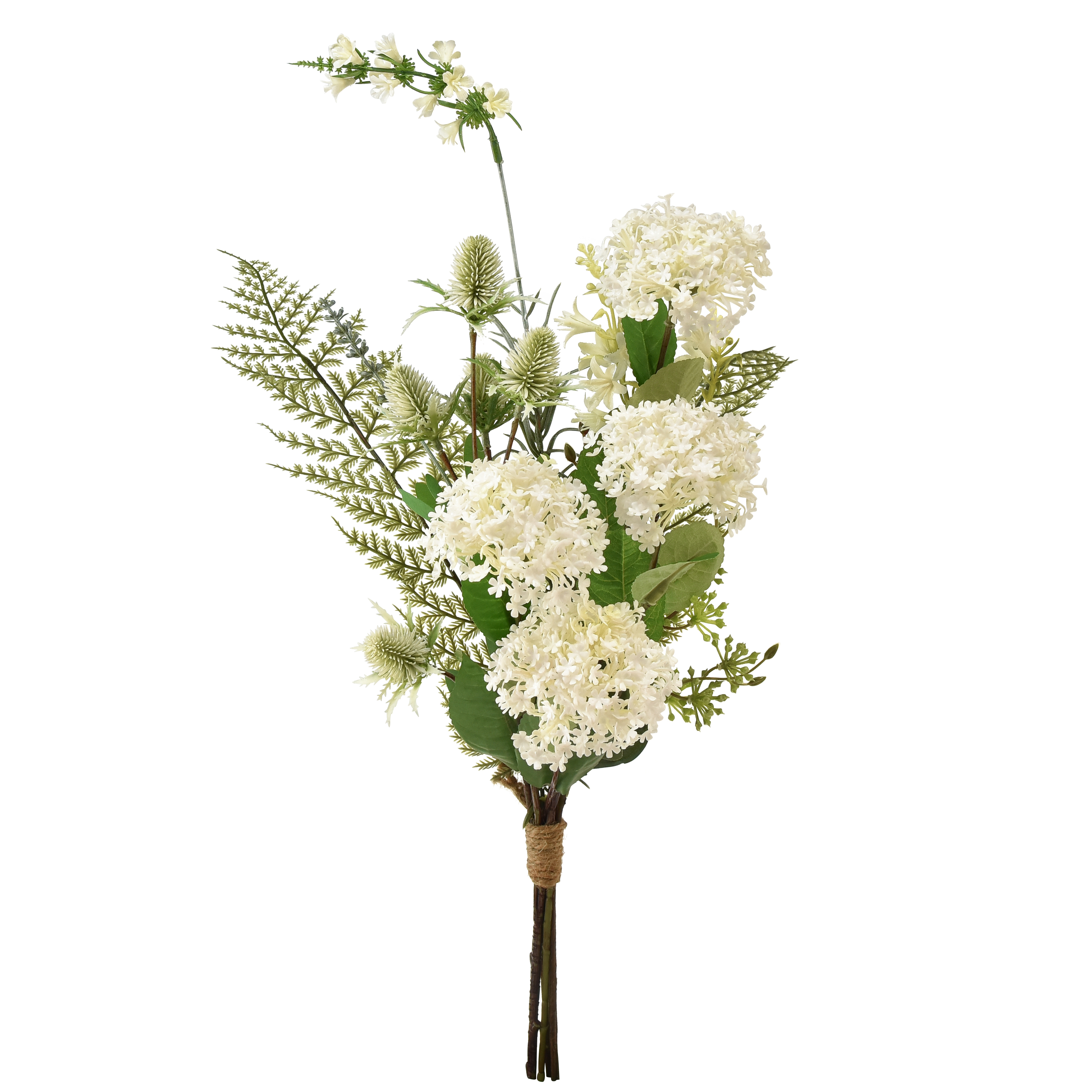 Názov produktu: Kytica umelých kvetov: snehová guľa, divá pichliača, papraď, 65 cm - dekorácia, prírodný vzhľad, jednoduchá starostlivosť