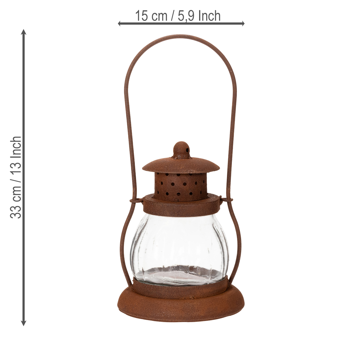 Túžite po teplej a príjemnej atmosfére vo vašom dome alebo záhrade? Predstavte si, ako tento rustikálny lampáš vyrobený z pravého kovu a skla naplní priestor jemným, blikajúcim svetlom sviečok. Či už ako dekoratívny prvok na terase, atmosférické osvetlenie na záhradné párty alebo útulný stredobod stola na romantickú večeru, tento lampáš sa zaručene stane ústredným bodom. Jednoducho nadčasovo krásny! Vďaka svojmu vintage dizajnu v elegantnej hrdzavohnedej farbe sa harmonicky hodí do akéhokoľvek prostredia, či už ide o vidiecky, boho alebo rustikálny štýl. Skutočná nevyhnutnosť pre milovníkov štýlového dekoru!