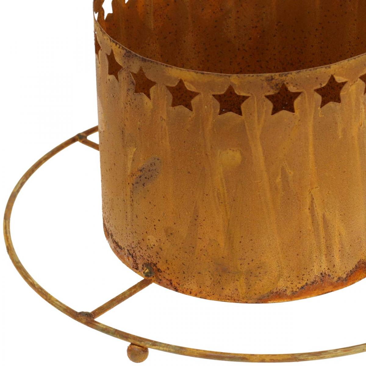 Tento adventný lampáš s hviezdičkami je zároveň praktickým držiakom na veniec vyrobený z kovu v trendovej patine.Okolo držiaka na čajovú sviečku môžete umiestniť svoj adventný veniec s vnútorným priemerom 15 a viac centimetrov a do kovového lampáša umiestniť ozdobu na sviečku. Praktický svietnik je vhodný na čajovú alebo stĺpovú sviečku.