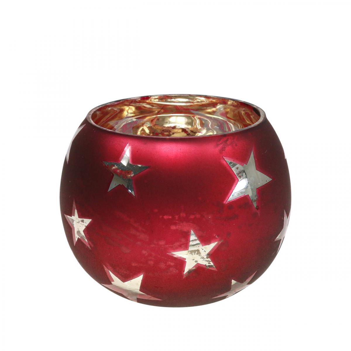 Lampáš sklenená čajová sviečka sklo s hviezdičkami červená Ø9cm V7cm