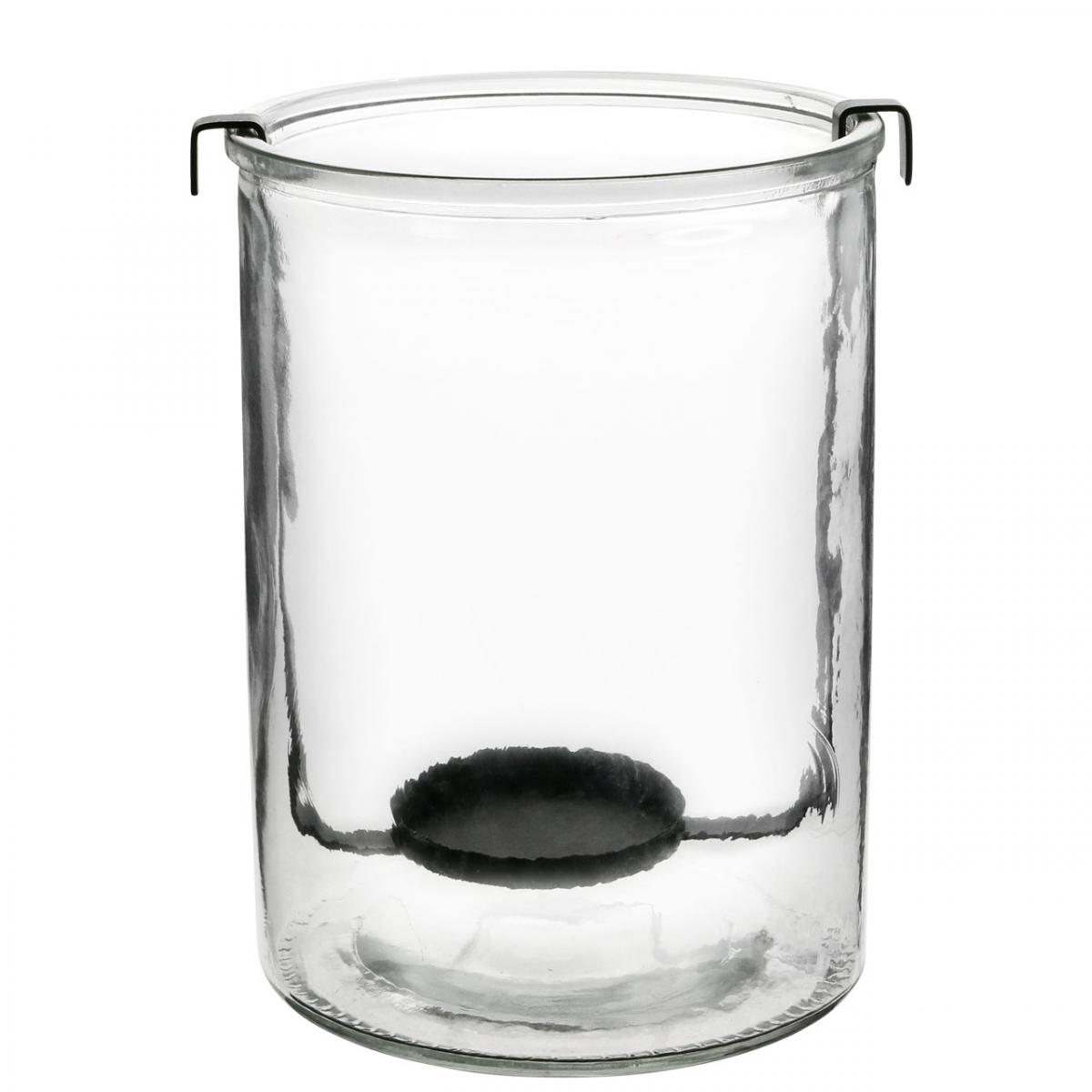 Lampáš sklo s držiakom na čajovú sviečku čierny kov Ø13,5×V20cm