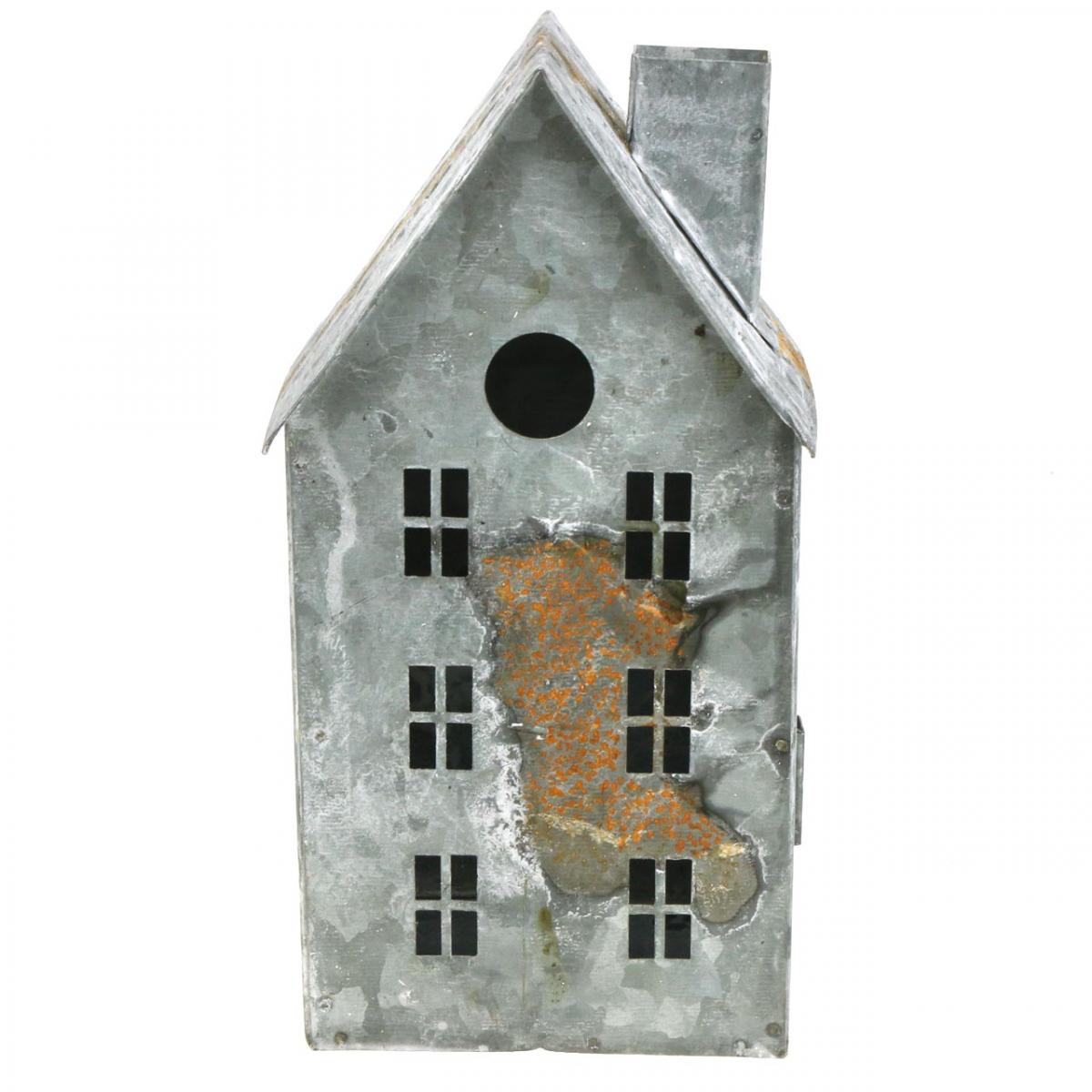 Lampášový domček kovový ošúchaný elegantný praný biely, hrdza V20cm