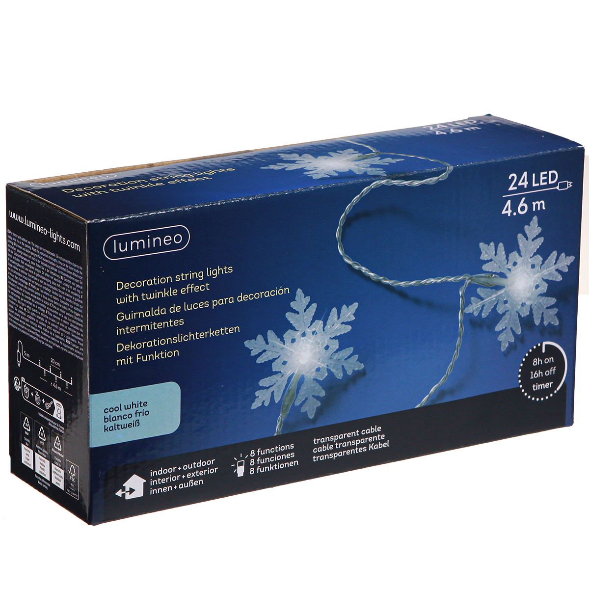 Názov produktu: LED girlanda snehové vločky vonkajšie studená biela 24 LED 460cm