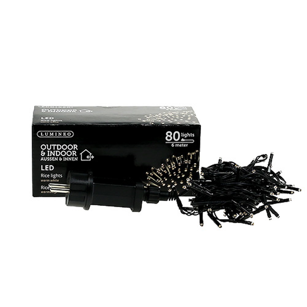 LED ryžová svetelná reťaz 80s 6m pre vonkajšiu teplú bielu