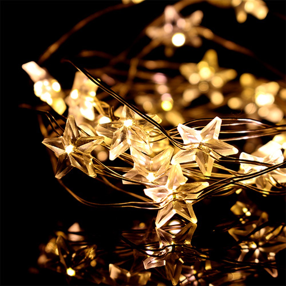 LED svetelný drôt v teplej bielej farbe s hviezdičkami je v malej krabičke a má malú spínaciu skrinku, do ktorej sa zmestia 3 AA batérie. Približne 2,3 metra dlhé rozprávkové svetielka zapnete vypínačom. Vzdialenosť medzi svietidlami je asi 10 centimetrov, pričom prívodné vedenie je dlhé asi 30 centimetrov.