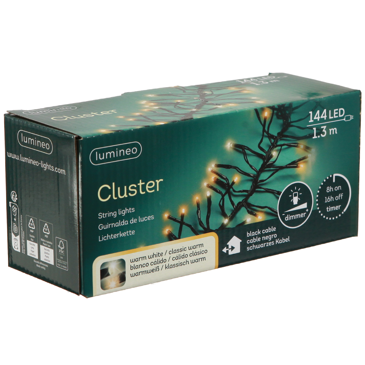 Naše rozprávkové LED svetlá zaujmú inovatívnym dizajnom zhluku, ktorý zaisťuje mimoriadne husté svetelné body. Vďaka teplým bielym svetlám vzniká príjemné a neoslňujúce svetlo. Nenápadný čierny dizajn kábla bez problémov zapadne do akéhokoľvek prostredia a nechá hovoriť iba jasné svetlá.