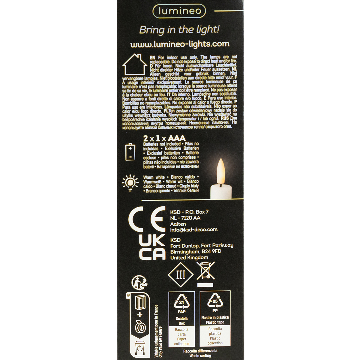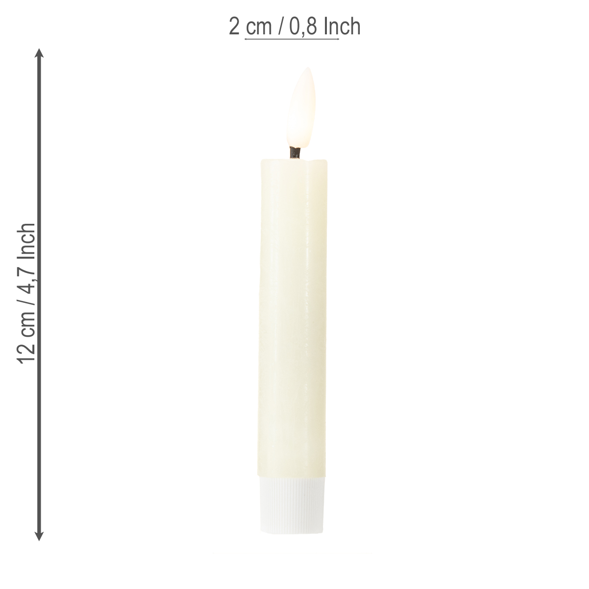 Sviečky majú výšku 14,5 cm a sú ideálne do elegantných svietnikov štandardnej veľkosti, ako aj do adventných vencov. Svoje kúzlo pôsobia nielen pri slávnostných vianočných dekoráciách. Sú napájané batériami a bez kábla, takže ich možno použiť kdekoľvek – nevyžadujú elektrickú zásuvku! Či už na parapete, pri prestieraní alebo ako súčasť romantického DIY projektu: tieto kužeľovité sviečky sú všestranné a dodajú každej miestnosti štýlovú atmosféru.