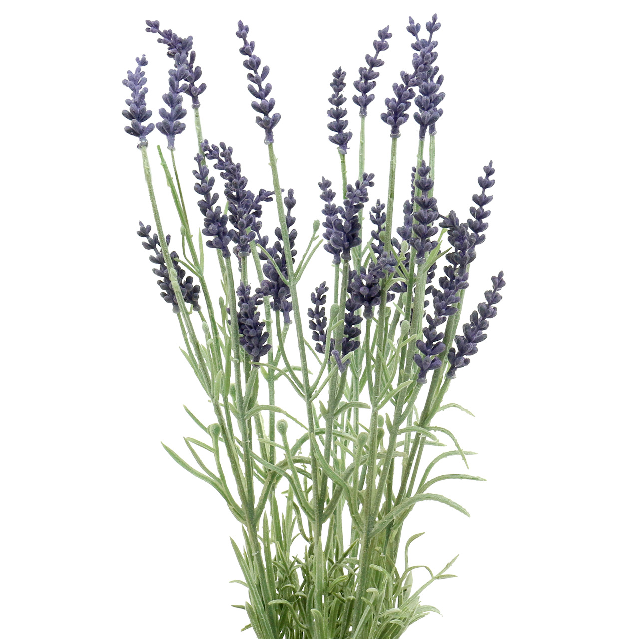 Umelý ker levandule je vyrobený z plastu, má drôtené jadro a má celkovú dĺžku cca 51 centimetrov.