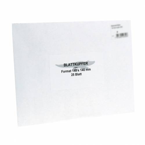 25 listov čistej medi je uložených v brožúre z hodvábneho papiera. Každý list je od seba oddelený a dá sa ľahko vybrať. Medený plech má rozmer približne 14 × 14 centimetrov. Jemný kov na pokovovanie je bezpečne zabalený v papierovej obálke.