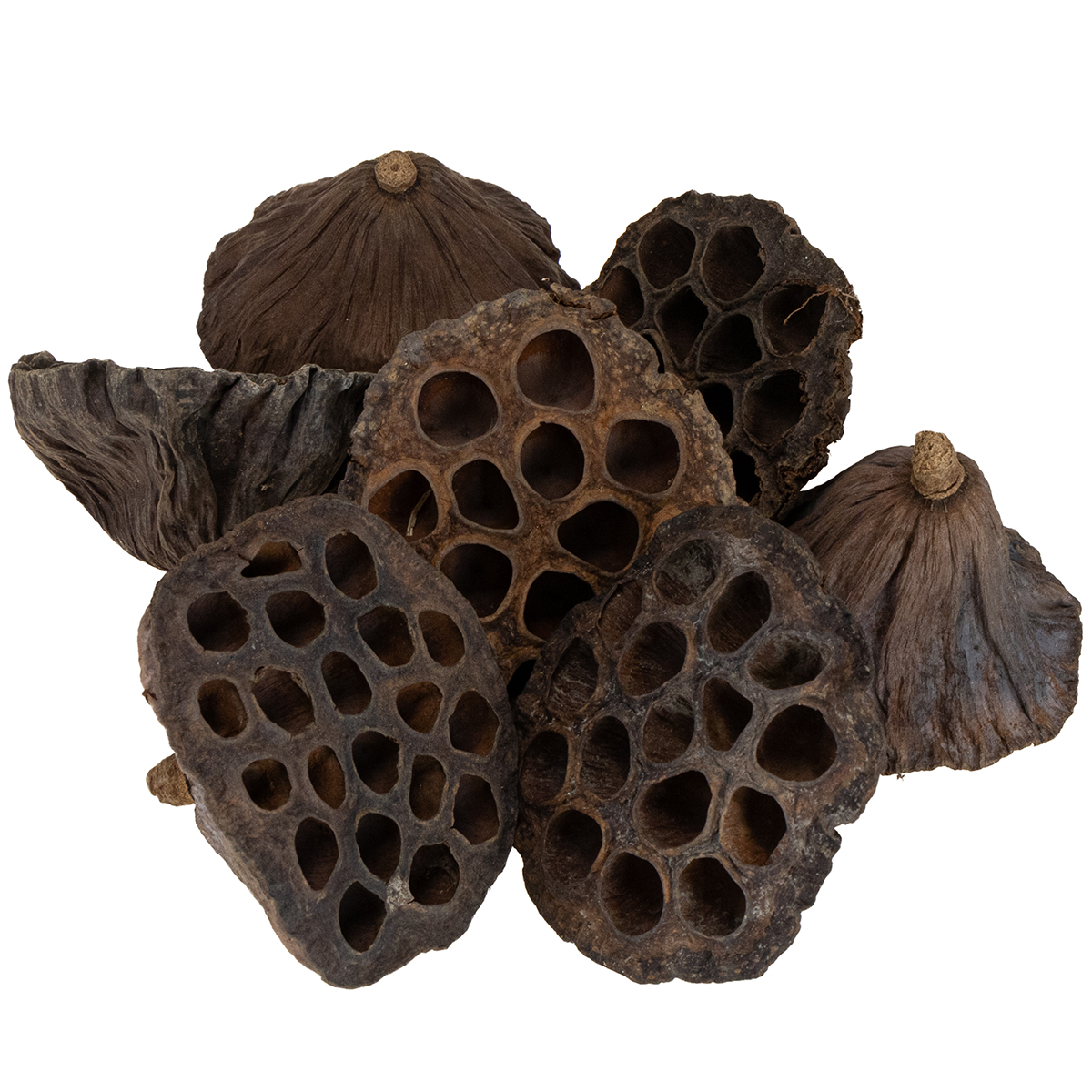 Lotosová banka v prírodnej farbe je 100 kusov vo veľkom vrecku a ako prírodný produkt sa môže odchyľovať od uvedených rozmerov. To znamená, že lignifikované lotosové klasy môžu mať veľkosť asi 4,5 až 6,5 centimetra a priemer 6 až 9 centimetrov.