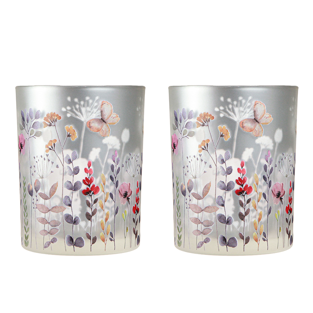 Lucerna sklenená maková lúka striebornej farby V12,5cm 2 ks