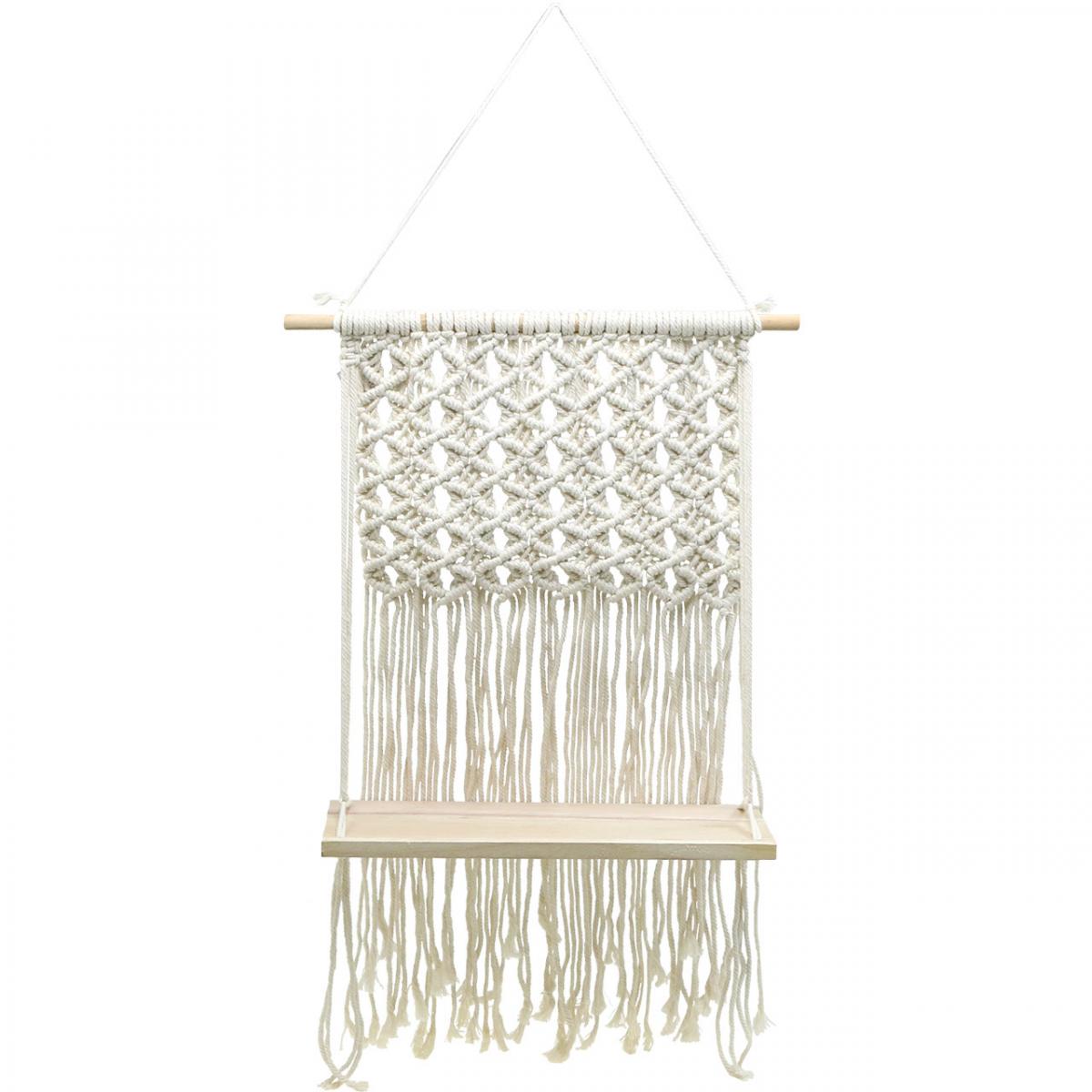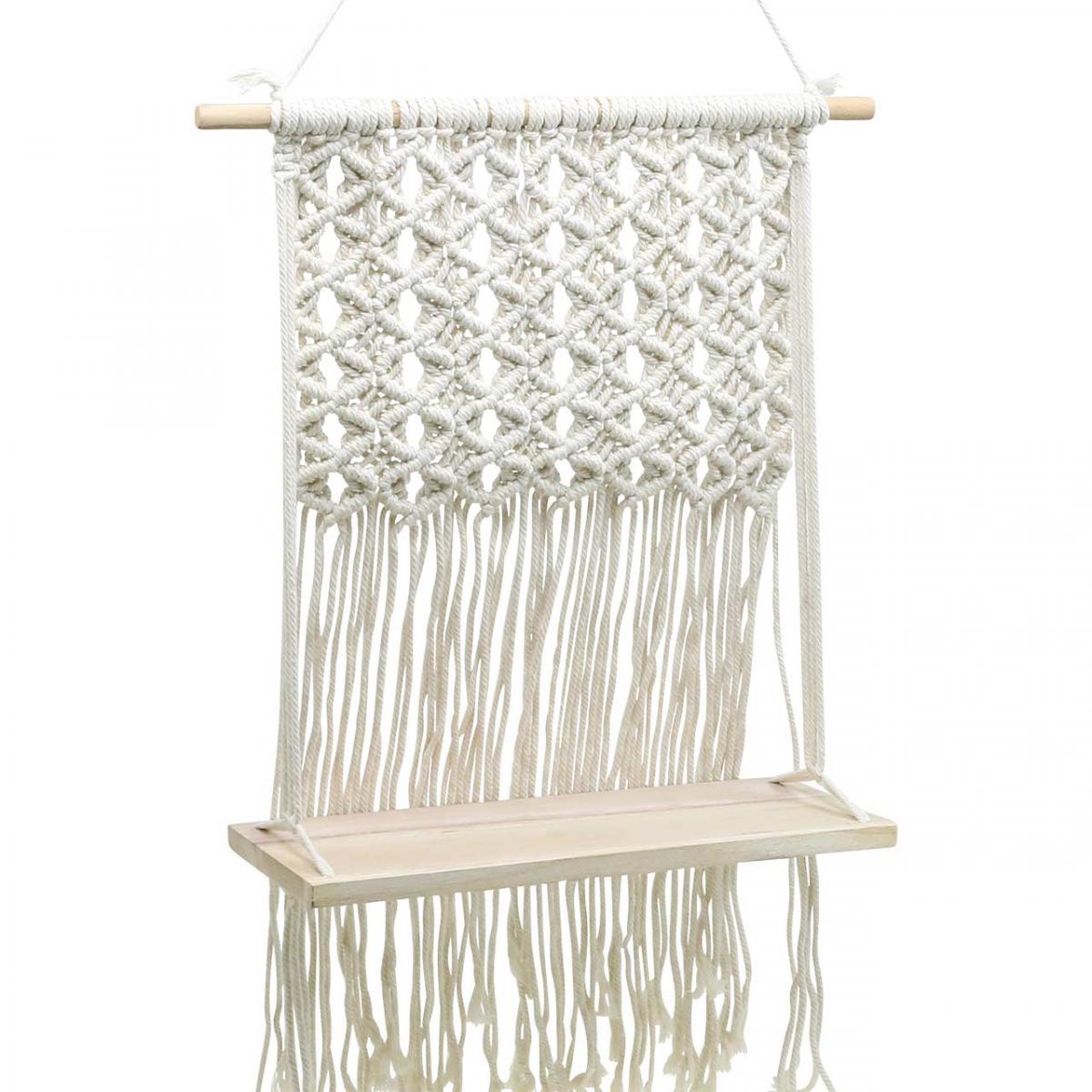 Makramé vešiak na rastliny, boho štýl, závesná polica, držiak na rastliny, dekorácia okna, drevená doska, 40x15cm