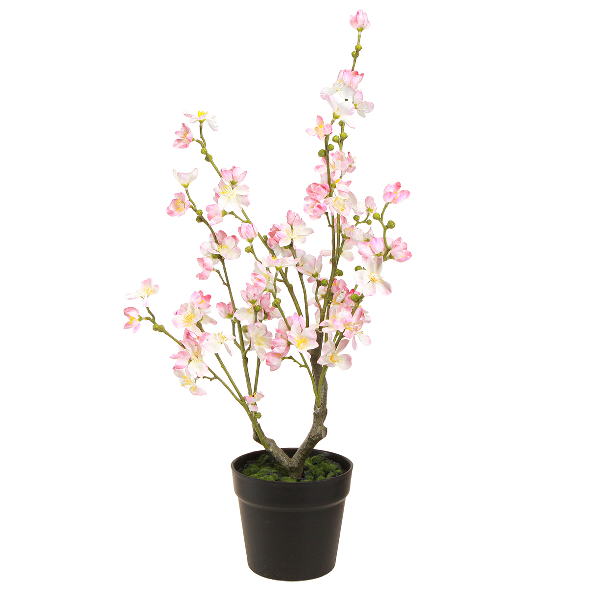 Mandľovník veľká umelá rastlina v kvetináči ružovo biela 74 cm