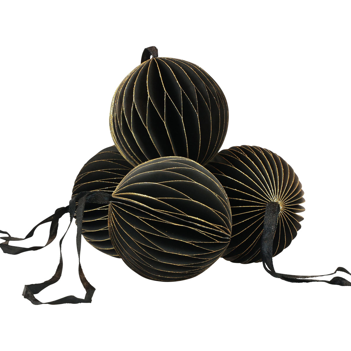 A krásna farebná kombinácia k vám prichádza vo štvorici! Pretože čierne a zlaté papierové gule sú dostupné v sadách po štyroch – rovnaký tvar a rovnaké rozmery. Je to skvelý spôsob, ako jednoducho a originálne ozdobiť vianočný stromček alebo vianočnú girlandu.