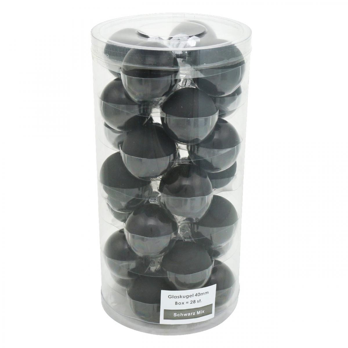 Mini guľa na vianočný stromček, mix dekorácií na stromček, vianočné gule čierne V4,5cm Ø4cm pravé sklo 24 ks