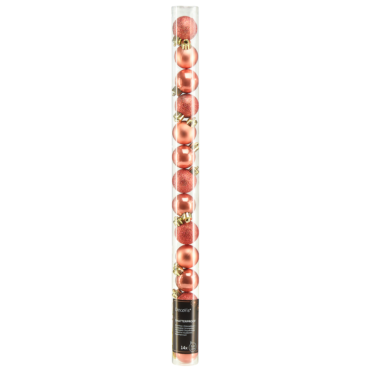 Mini gule na vianočný stromček oranžové nerozbitné Ø3cm 14ks