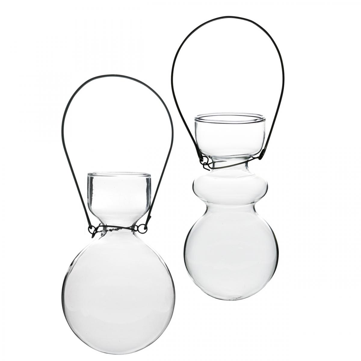 Mini sklenené vázy na závesný držiak cibuľovitý H11/11,5 cm sada 2 ks