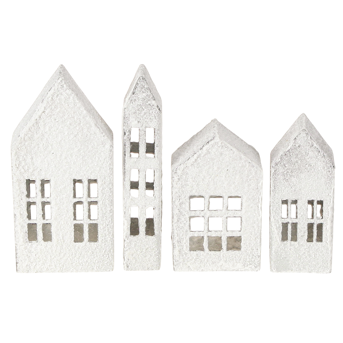 Či už romanticky aranžované na jedálenskom stole so sviečkami, ako štýlový pútač pozornosti na poličke v obývačke alebo ako decentný doplnok k výzdobe parapetu – tieto mini domčeky vždy vytvoria príjemnú atmosféru. Vďaka sade so štyrmi rôznymi dizajnmi si môžete vytvoriť malé mestečko alebo ich umiestniť na rôzne miesta a vytvoriť tak harmonickú atmosféru. Obzvlášť pôvabne vyzerajú v kombinácii s ďalšími doplnkami, ako sú napríklad rozprávkové svetielka, vetvičky eukalyptu alebo jednoduché sklenené vázy – vyskúšajte to!