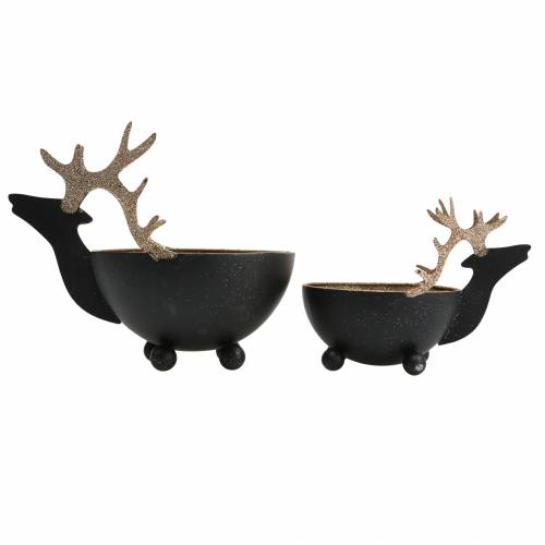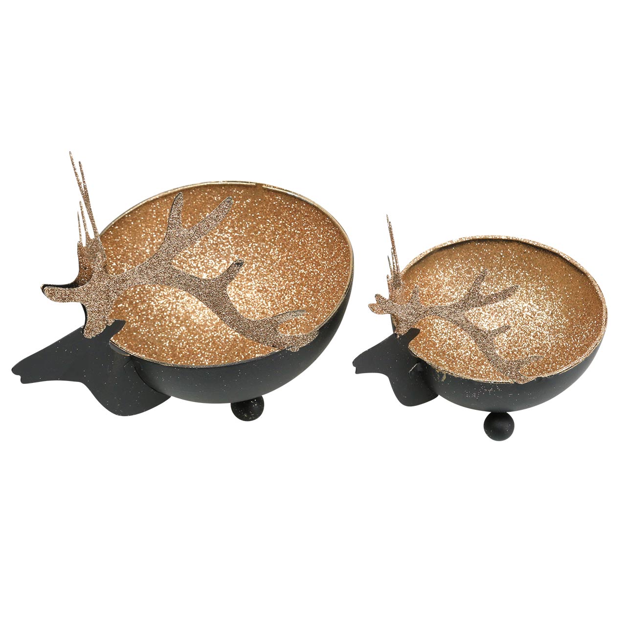 Dostatok lesku a trblietok pre váš banketový stôl: miska so sobovu hlavou v čiernej a zlatej farbe je veľmi trendy!