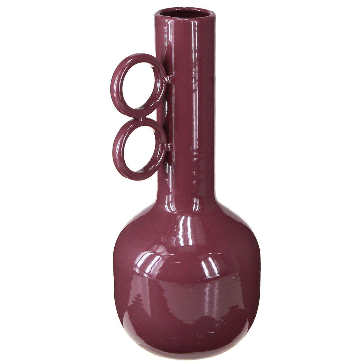 Moderná váza s dlhým hrdlom a okrúhlymi rúčkami