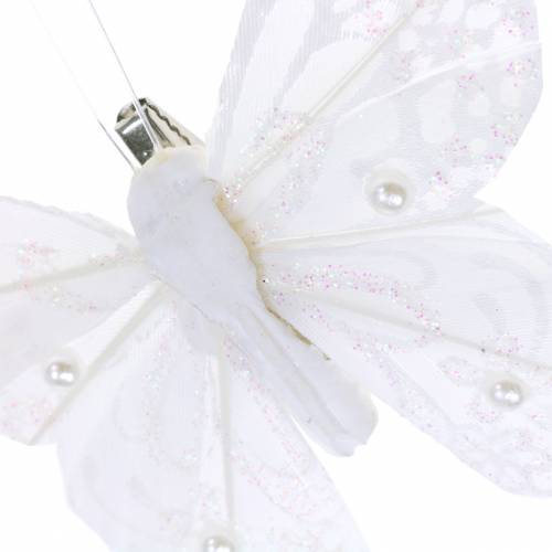 Motýľ z peria na klipe biely 10 cm 12 ks
