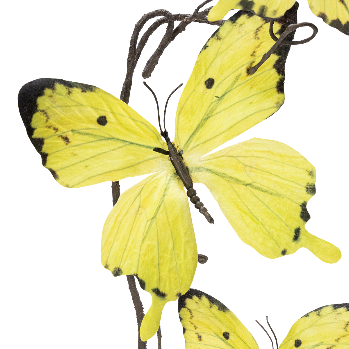 Naša motýlia vetvička zaujme nielen svojím realistickým vzhľadom, ale aj svojou všestrannosťou. S výškou 75 cm a priemerom 20 cm je ideálna ako dekoratívny prvok na komody, odkladacie stolíky alebo parapety. Žiarivá, no zároveň teplá žltá farba motýľov okamžite vnesie do každej miestnosti veselú atmosféru. Vetvička je vyrobená z vysoko kvalitného polyesteru a plastu, takže je odolná a nenáročná na starostlivosť. Na rozdiel od skutočných kvetov ju nemusíte polievať ani zabezpečovať dostatok svetla. Jednoducho ju umiestnite tam, kam chcete, a vychutnajte si jej svieži vzhľad – jarný štýl nemôže byť jednoduchší! Pre štýlovú jarnú dekoráciu skombinujte vetvičku so sklenenými vázami, kovovými prvkami alebo keramickými figúrkami. Obzvlášť atraktívne vyzerá aj ako súčasť letného prestierania stola na rodinné oslavy, veľkonočné akcie alebo malé záhradné párty. Pre prirodzenejší vzhľad aranžmánu vetvičku vložte do košíka alebo do iných umelých jarných kvetinových aranžmánov. Dizajn sa bez problémov hodí do moderných, minimalistických interiérov, ako aj do rustikálnych a škandinávskych štýlov. Jeho jemný dizajn doplní akýkoľvek dekor miestnosti bez toho, aby bol rušivý.