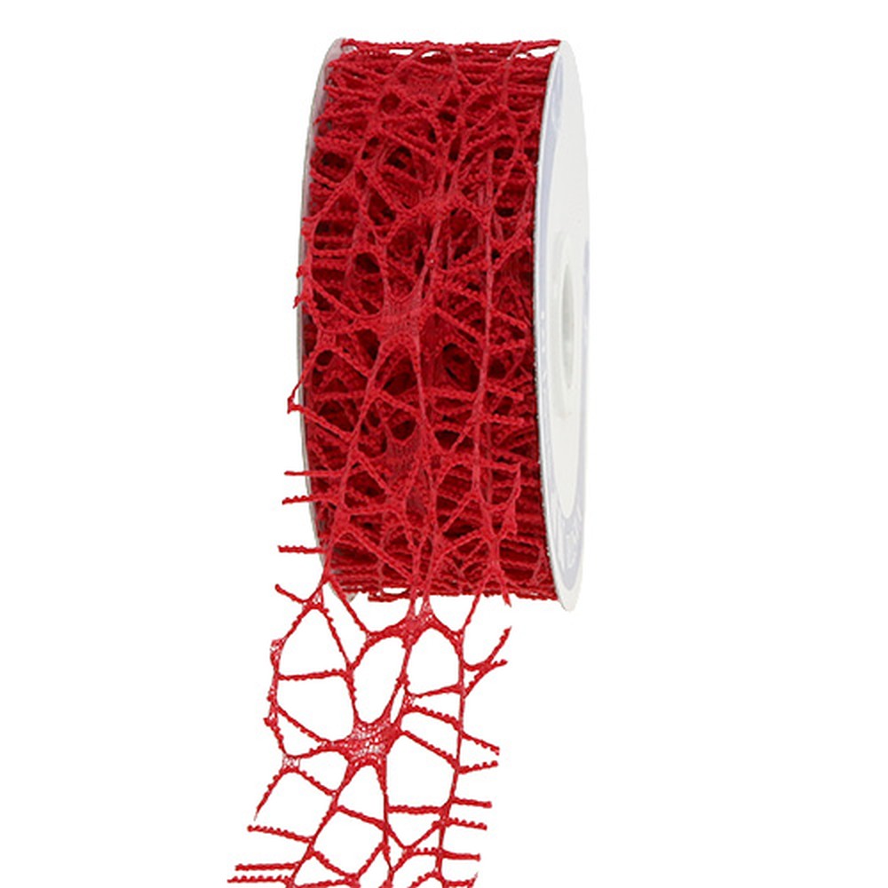 Mriežková páska v červenej farbe je nalepená na plastovej rolke so svojimi cca 10 metrami. Šírka je asi 40 milimetrov.