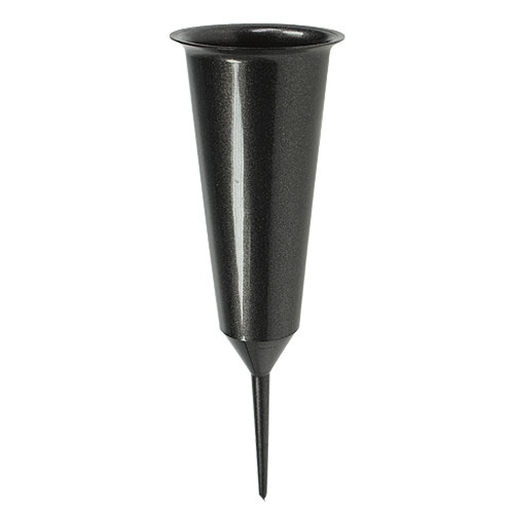 Hrobová váza v antracitovej farbe má celkovú výšku asi 33 centimetrov, z toho hrot zaberá asi 10,5 cm a samotná váza asi 22,5 cm. So zahnutým okrajom má váza vonkajší priemer asi 10 centimetrov a vnútorný priemer asi 8 centimetrov. Priemer dole je asi 5,5 centimetra.