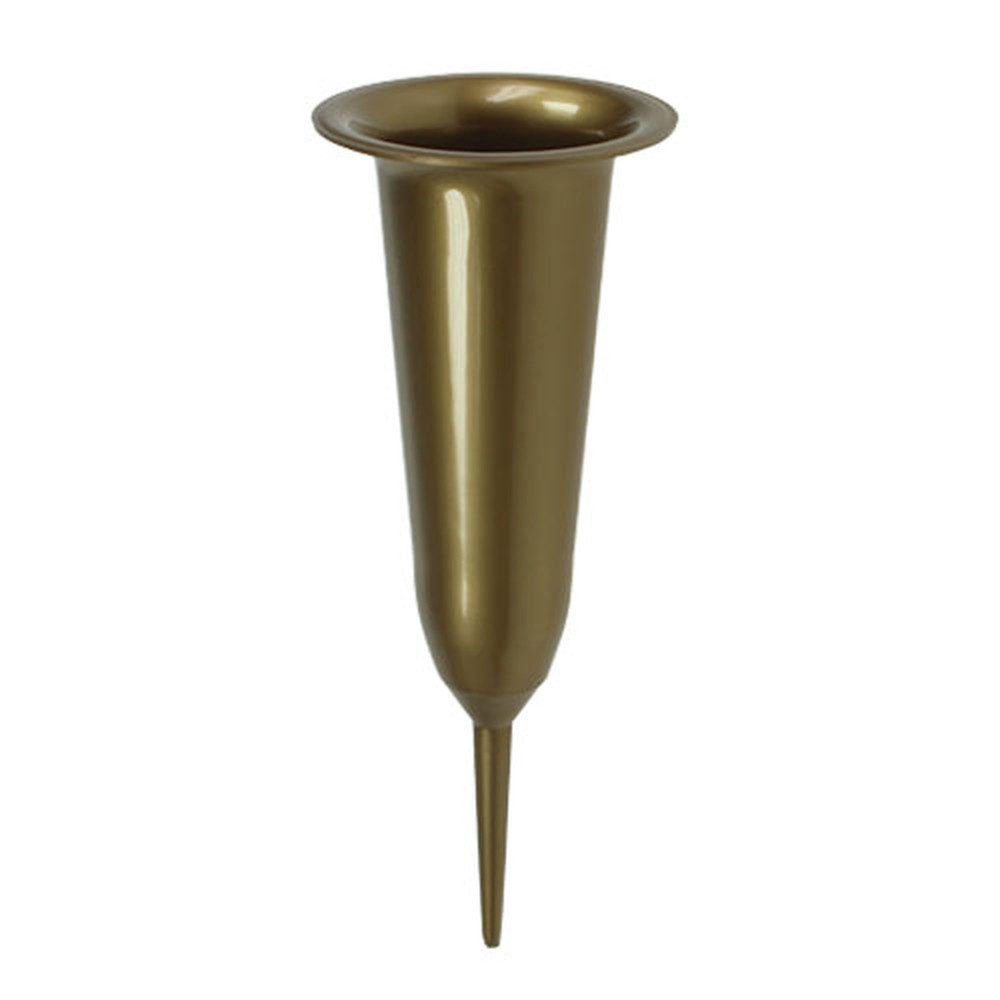 V hornej časti je široký okraj, ktorý drží tvar smútočnej kytice a podopiera aj ťažké hlávky kvetov. Váza na hrob ponúka dostatok priestoru pre vodnú nádrž a s ňou spojené živiny. Kvetinovú vázu je možné naplniť okrem čerstvých kvetov aj sušenými rastlinami alebo hodvábnymi kvetmi na výzdobu hrobu. Zlatá farba zásuvnej vázy elegantne zdôrazňuje pohrebné kvety.