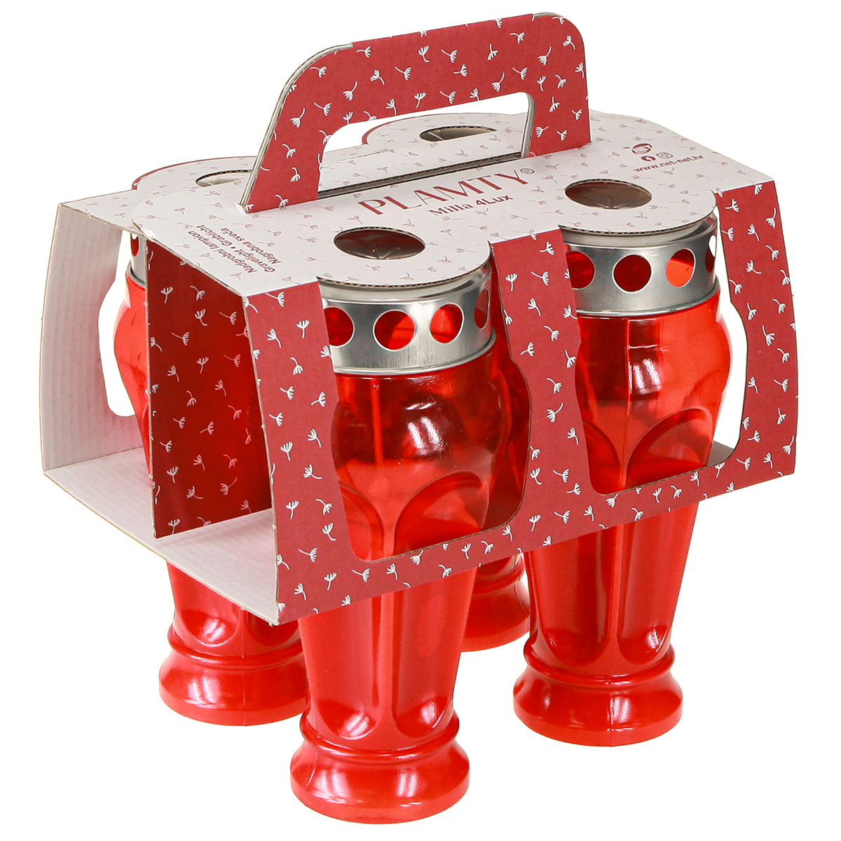 - Názov produktu: Náhrobné sviečky, červené, doba horenia 18h, Ø9cm, V19cm, 4 ks