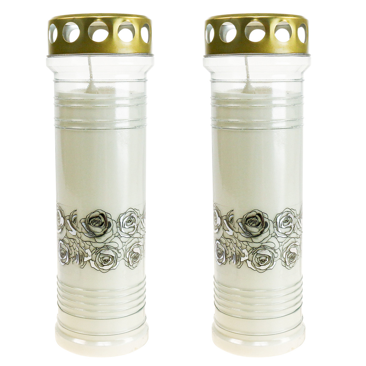 Náhrobné sviečky ruže biele smútočné svetlo Ø7cm V23,5cm 100h 2ks