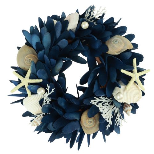 Námorný dekoračný veniec s mušľami modrej farby prírodné Ø27cm