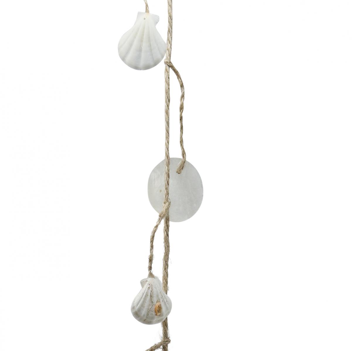 Závesnú dekoráciu je možné pripevniť na okno alebo stenu pomocou dvoch pútok na koncoch mušľovej girlandy. Námorná závesná dekorácia je nádherná na balkóne, v interiéri alebo na terase orientovanej do záhrady! Či už vodorovne alebo zvislo ako závesná dekorácia zo stropu, možnosti využitia dekorácie mušľovej girlandy sú nespočetné.