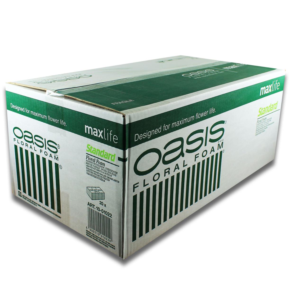Štandardné kocky Oasis Steckmoos maxlife sú v praktickom zásobovacom balení s celkovým počtom 20 kociek a sú dodávané v kartónovej krabici. Každá kvetinová penová tehla meria približne 23 x 11 x 8 centimetrov, je predperforovaná a dá sa ľahko deliť a rezať do tvaru.