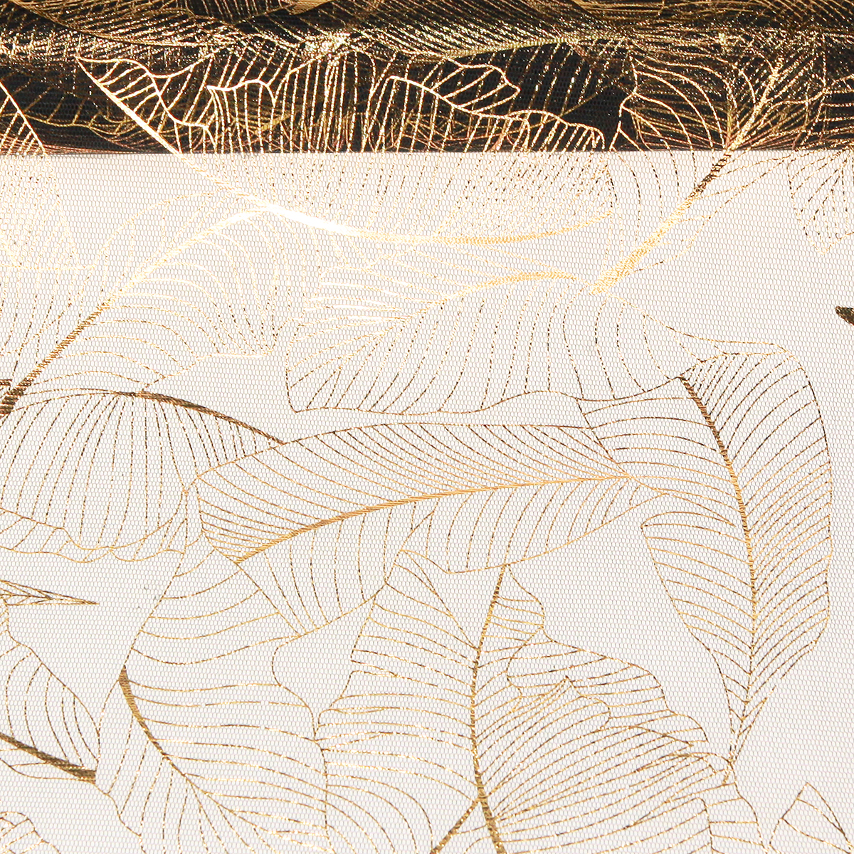 Organzový behúň čierno-zlatý – elegantná dekoračná rolka s listovým vzorom 48 x 450 cm
