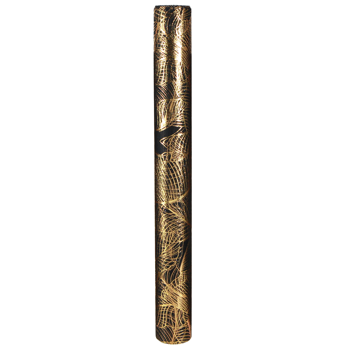 Názov produktu: Organzový behúň čierno-zlatý – elegantná dekoračná rolka s listovým vzorom 48 x 450 cm
