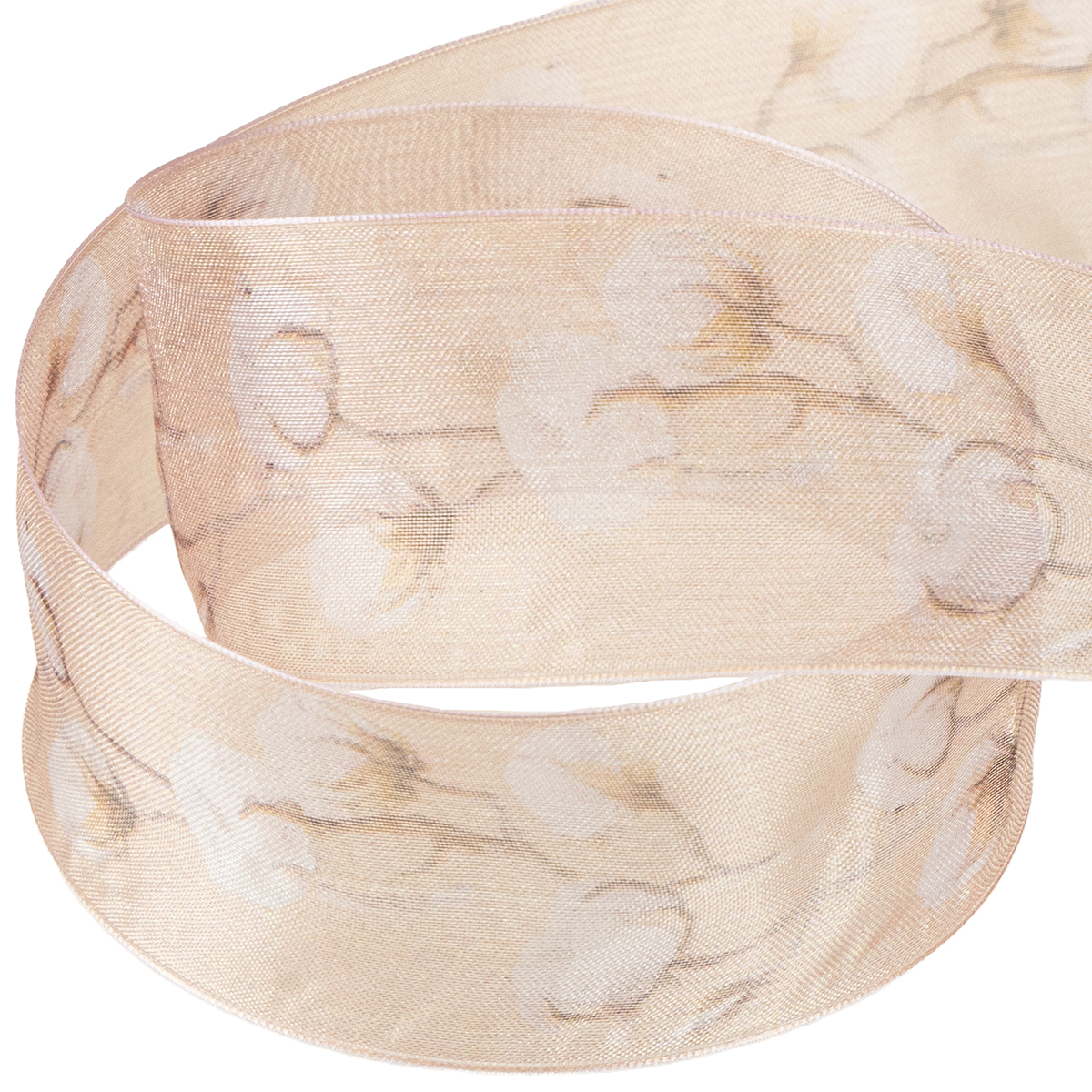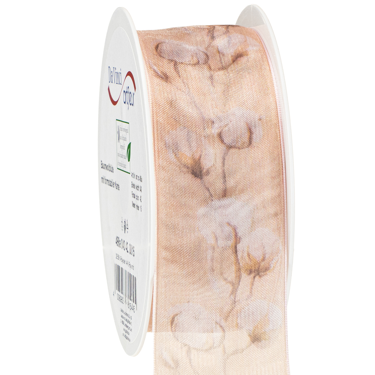 Organzová stuha bavlnené kvety dekoračná stuha ružová 40mm 15m