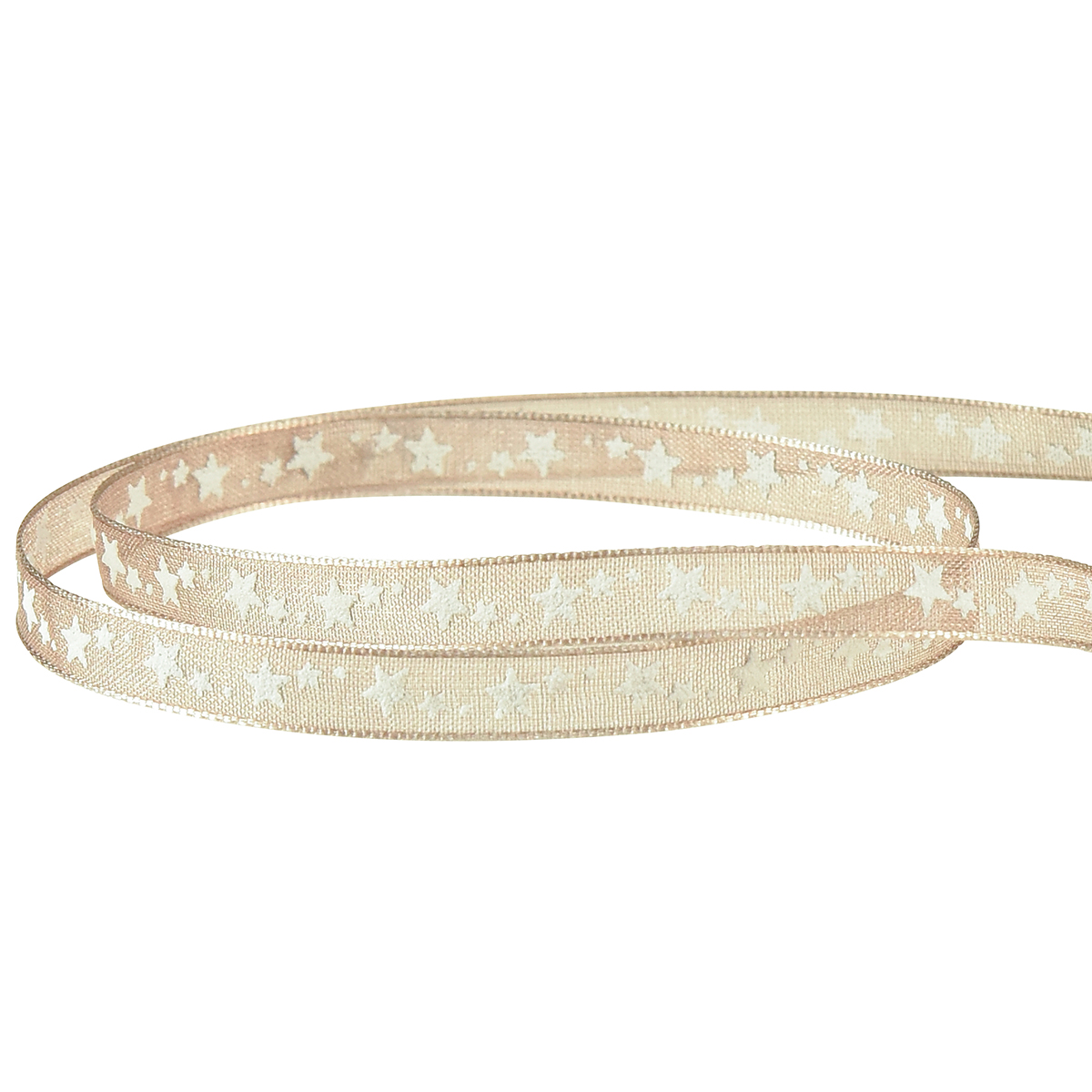 Názov produktu: Organzová stuha béžová s bielymi hviezdičkami Vianočná stuha 6mm 20m