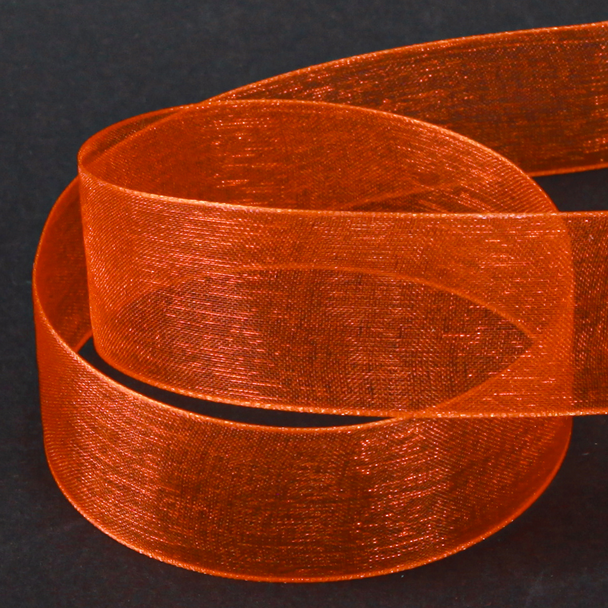 Organzová stuha s lemom v oranžovej farbe má dĺžku cca 50 metrov a je navinutá na plastovej rolke. Šírka je približne 25 mm a remienok je vyrobený zo 100% polyesteru.