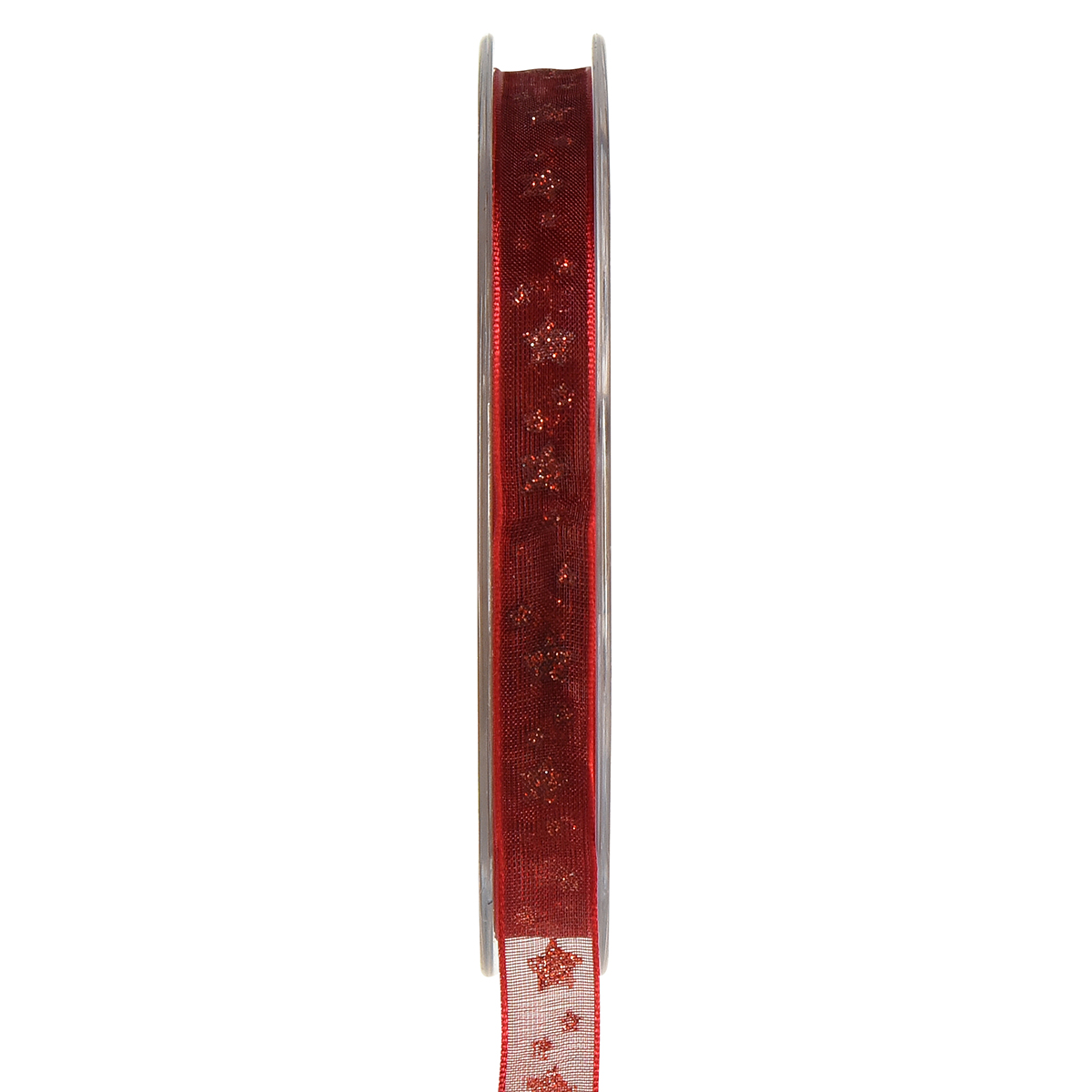 Názov produktu: Organzová stuha červená s trblietavými hviezdami – vianočná stuha 10mm 20m